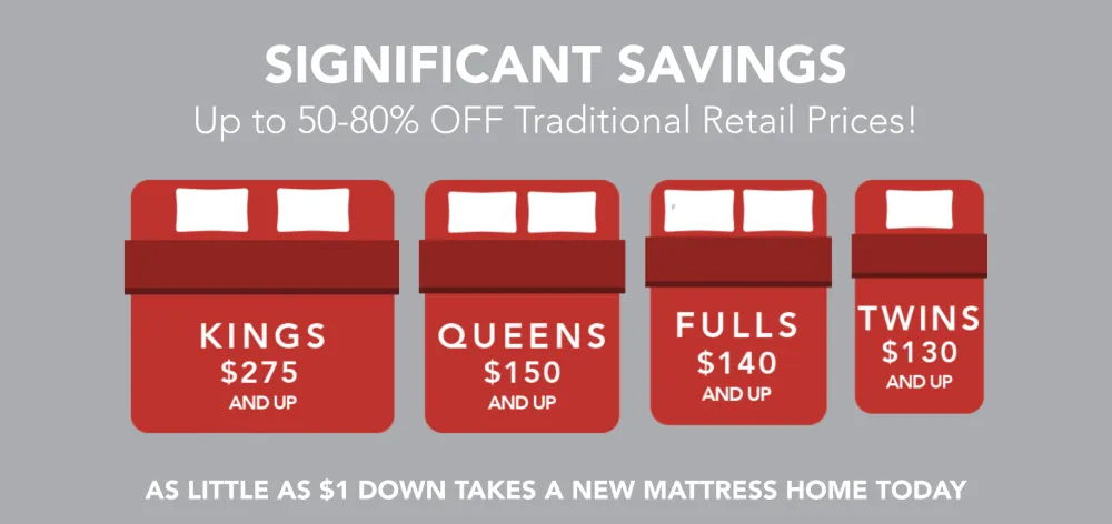 Save 50-80% on brand new mattress sets!